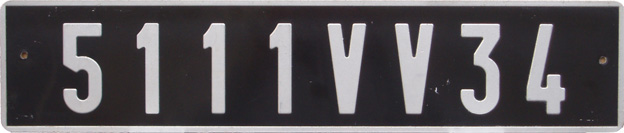 These plates belong to the series started in 1950 and original design from 1963. Both are issued in departement Yvelines (Versailles), region Ile-de-France. Note the different fonts used. The white front plate is manufactured by Tiflex and issued in 1983 while the yellow rear plate is manufactured by La Superplaque and issued in 1980. |