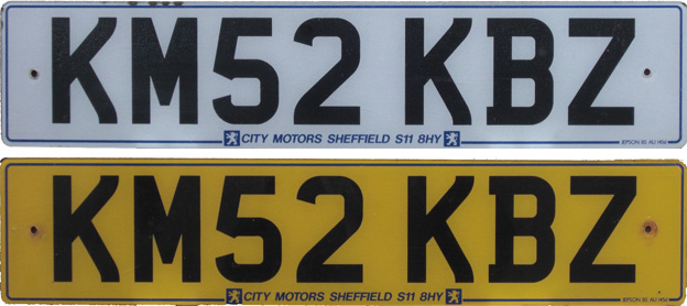 These plates belong to the series issued from 2001, and made with the optional Euroband. The white front plate is issued in Maidstone, Kent, in 2002, while the yellow rear plate is issued in Preston, Lancashire, in 2001/2002. |