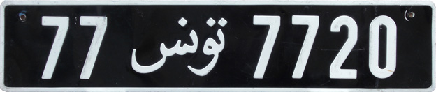This plate belongs to the series and design issued since ca. 1975. The Arabic text reads "Tunisia".