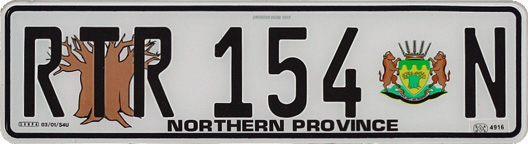 This plate belongs to the series and design issued from 2003 and still current. Format is ABC 123 pc where pc is Province Code. In 2003 province Northern was renamed Limpopo and plates being issued today comes with L-suffix insted of the N-suffix illustrated above. |